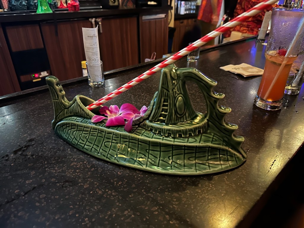 And of course I had to pick up the collectible mug for the Nautilus drink, which is a beautiful, ceramic, tiki representation of the famous submarine. It was somewhat problematic to get home, but certainly worth it.